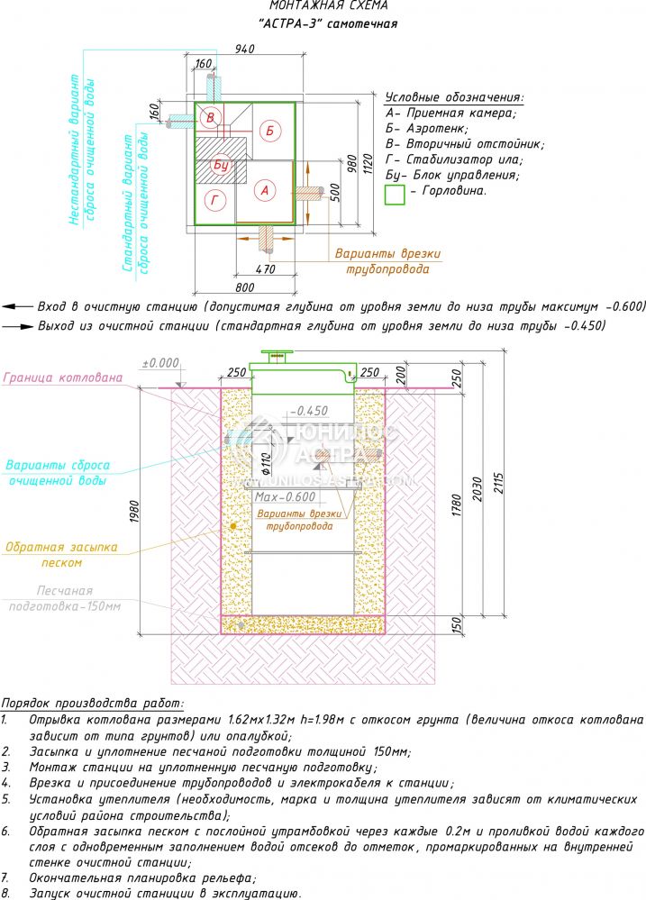 Процесс переработки сточных вод в септике Юнилос Астра 3 можно описать следующим образом: